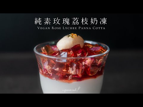 【華麗甜點】超簡易!純素玫瑰荔枝奶凍|How to Make Vegan Rose Lychee Panna Cotta (Eng Sub)|食譜|ASMR|4K