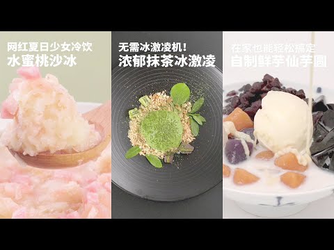 水蜜桃冰沙浓郁抹茶冰淇淋自制鲜芋仙芋圆&Juicy peach smoothie rich matcha ice cream homemade fresh taro round
