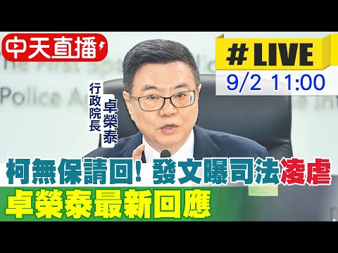 【中天直播 #LIVE】柯文哲無保請回! 臉書首發聲:司法極盡壓迫.凌虐 |行政院長卓榮泰出席記者會 最新回應"20240902@中天新聞CtiNews